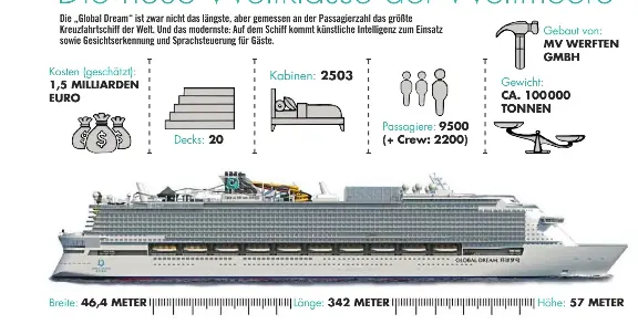 This ship is a really "mass-product" with relative small cabins designed for Asians. So for 1 or 2 or 3 week-cruises of high standard it is not the best, with ca. 9000 people much too full onboard for relaxing etc. . But for to stay only 1, 2 or 3 nights on a floating Disney World with "1000" slides, games, movies, playgrounds etc. it is a good solution.